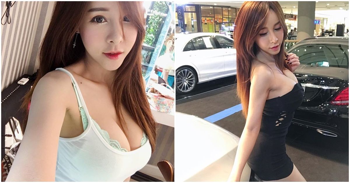 正妹車模挺「狂野車頭燈」大又飽滿.... 溢出來的乳量真的好邪惡